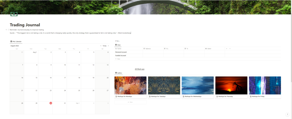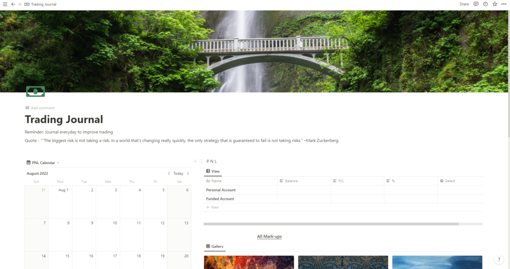 This notion template is a where you can journal everyday for any trades you have taken. It makes it possible to write down your trades and previous back tested data, using the most convenient way for you.